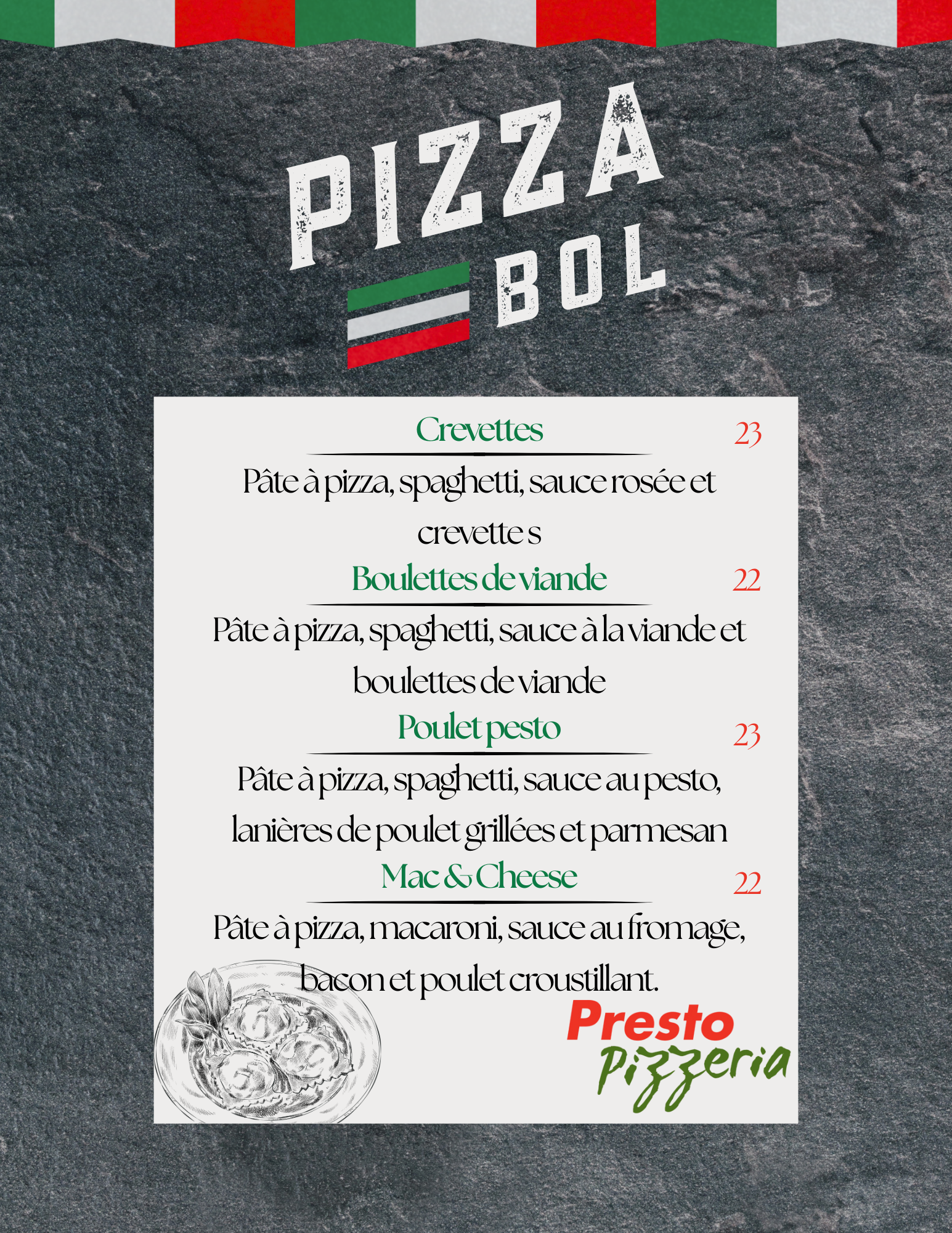 aussi disponible le nouveau Pizza Bol.